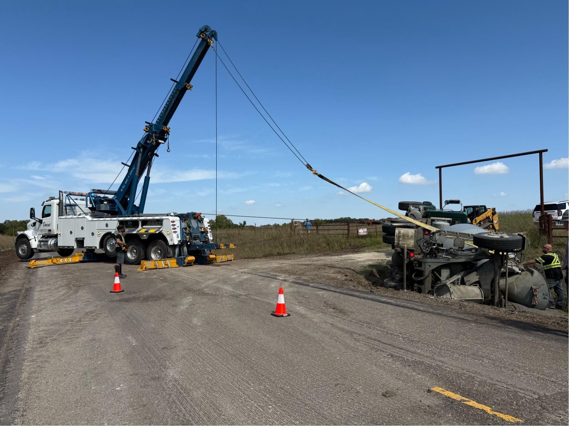 Absolutely. We specialize in mud recovery, soft shoulder pull outs, and off-road extractions from job sites and farm fields. Kansas towing regulations prohibit combination towing of disabled commercial vehicles. For safety and compliance, your truck and trailer must be moved separately.
